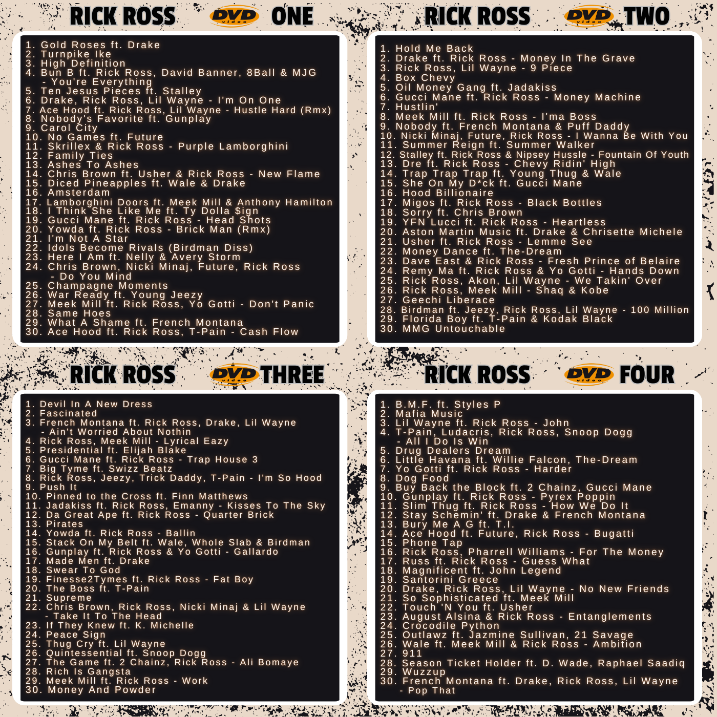 #No8to12TV Rick Ross Video Myxer * 120 uncensored Hip Hop videos *4 DvDs*